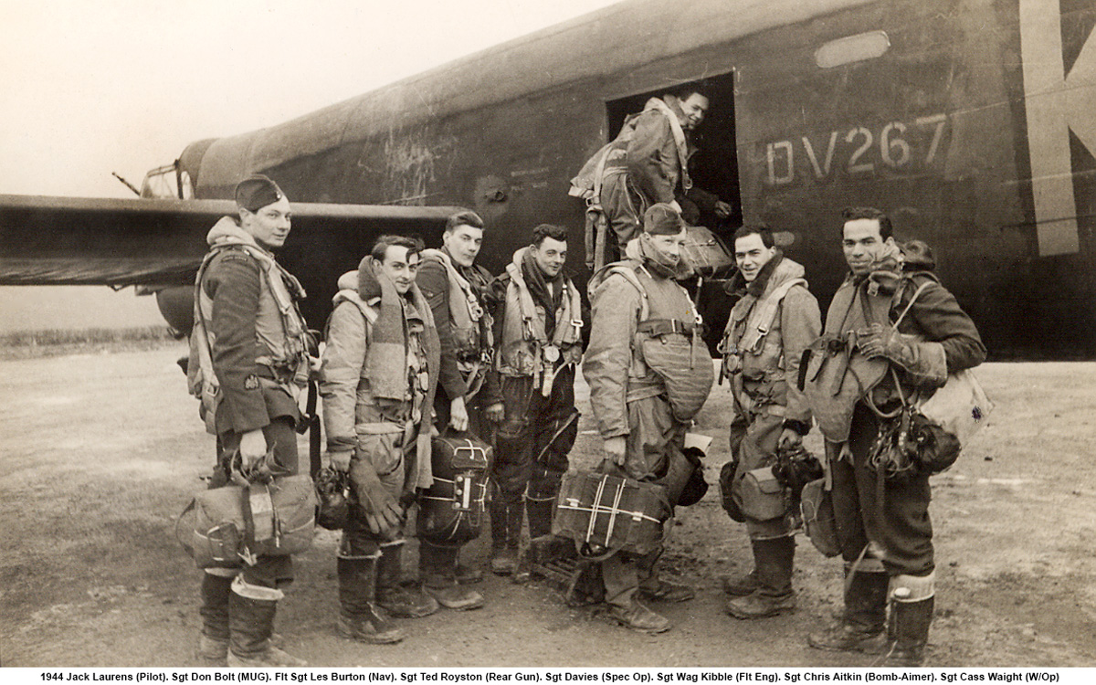Het lichaam van Cass Waight werd gevonden bij Noordwijk, waar hij werd begraven naast de kerk. Ook Don Bolt overleefde de val niet, zijn lichaam werd gevonden bij Tolbert en daar begraven. Jack Laurens de Zuid-Afrikaanse piloot bleef tot het laatst aan de knuppel van zijn kist om zijn bemanning zoveel mogelijk tijd te geven het toestel te verlaten. Zijn lichaam werd bij het vliegtuigwrak gevonden. Ook hij werd op de begraafplaats van Tolbert begraven. Andries van der Donk van de Noorderweg was getuige van het drama, hij zag het brandende toestel vlak bij zijn boerderij neer komen. Jack Laurens was in 1937 getrouwd met Margret, zij was zwanger toen Jack dienst nam als piloot bij de RAF, zijn zoon John werd geboren in november 1939. Jack heeft zijn zoon John nooit gezien. In 2015 overleed John Laurens. De kleinzoons van Jack, James en Jack, wilden graag dat een kistje met as van hun vader bijgezet zou worden in het graf van hun opa. En dat gebeurde tijdens een bijzondere ceremonie, ook om de herinnering aan het offer dat de bemanning van het neergestorte vliegtuig heeft gebracht, levend te houden. Een emotionele gebeurtenis waarbij de as van John bij zijn vader Jack werd achtergelaten. Volgens Jack en James zijn vader en zoon nu na hun dood herenigd. Zij zijn verwonderd dat zoveel jaar na de oorlog, de Tolberter gemeenschap nog steeds herdenkt en bloemen legt bij de graven van voor hen onbekende personen.