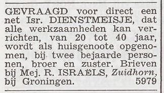 Roosje Israels * woonde met haar broer Jonas [1859] in Zuidhorn.